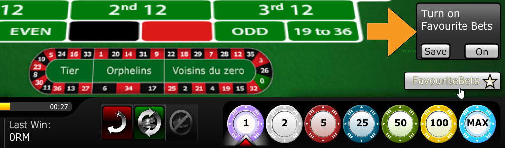 Favourite Bets PanelUsed for saving a preferred betting pattern, which thenapplies to all the rounds after. |
