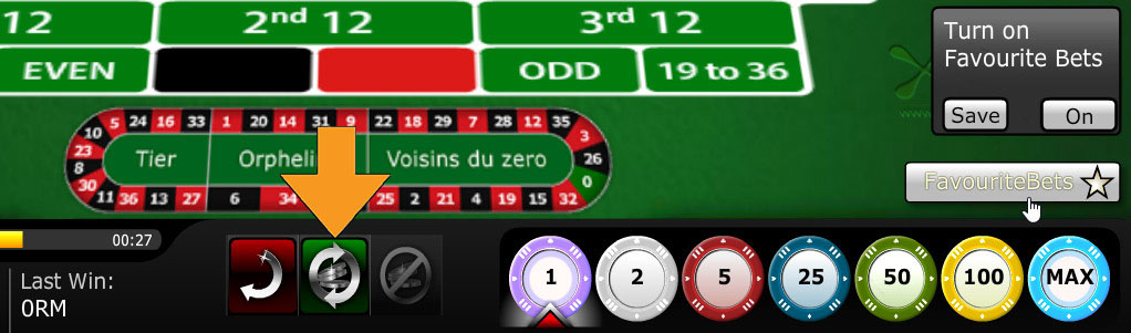 | Orphans | A bet on all the numbers between the zero section and the tier. This is a five chip bet. To make this bet, the player clicks on the ‘Orphans’ section within the special bets section. ‘Orphans’ are the numbers above and below the ‘Orphans’ button. | As for individual bets |