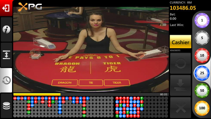 The player can place a bet on: “Dragon”, “Tiger” or “Tie”.